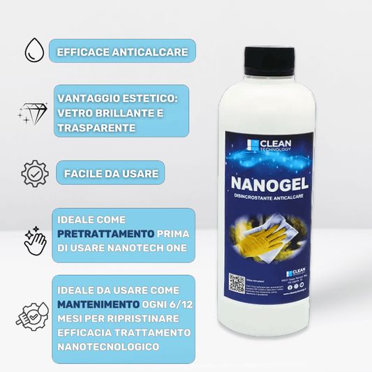 1. NANOGEL da 125 ml è il pretrattamento per vetri e ceramica ed è usato anche per la manutenzione ogni 6/12 mesi